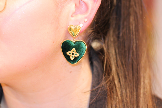 Boucles d'Oreilles en Velours Vert et Acier Inoxydable
