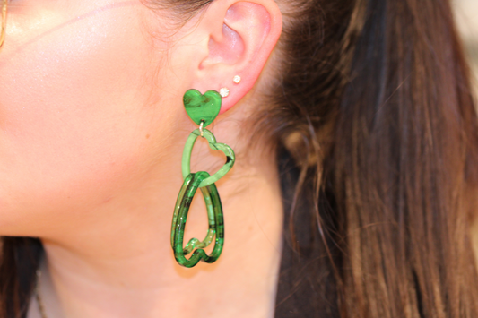 Boucles d'Oreilles Double Cœur en Résine Verte