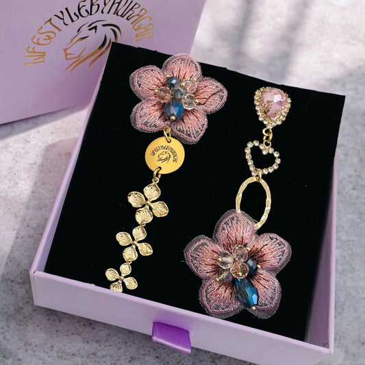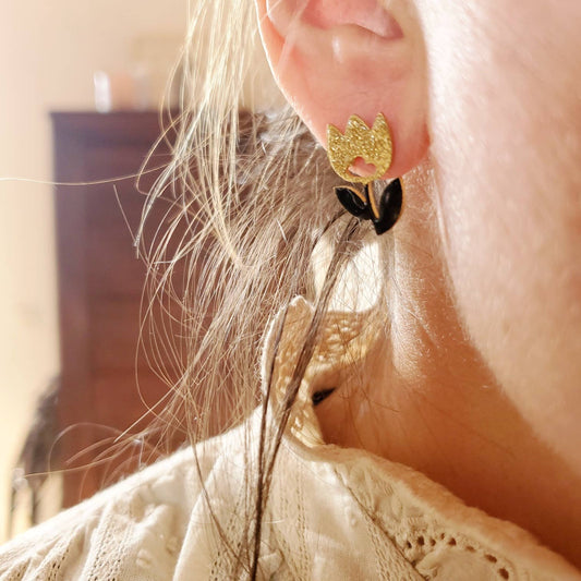 Boucles d'oreilles clous fleurs dorées et noires