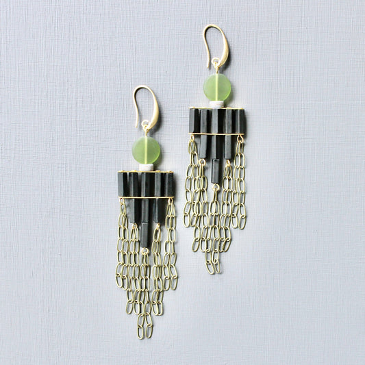 Boucles d'oreilles à plumeau en olivine et noir